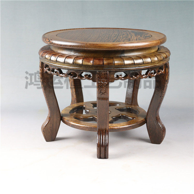 📚 鸡翅木圆形凳子花瓶瓷器盆景鱼缸玉石摆件花架佛像古典底座木托