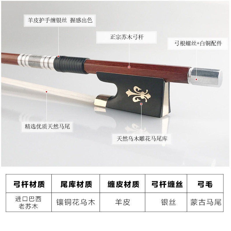 📚 德因美高小提琴弓杆天然马尾弓子巴西苏木弓提琴弓子八角型把位