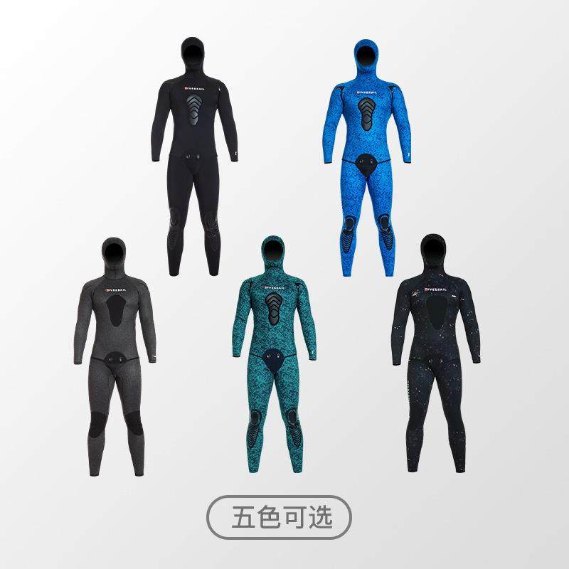 📚 猎鱼潜水服/5/7MM迷彩渔猎服分体连帽光皮潜水衣保暖自由潜湿衣