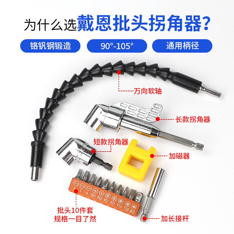 📚 批头拐角器转弯螺丝刀电钻90度拐弯电动转角万向直角套筒加长杆