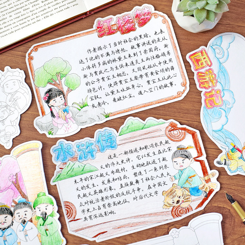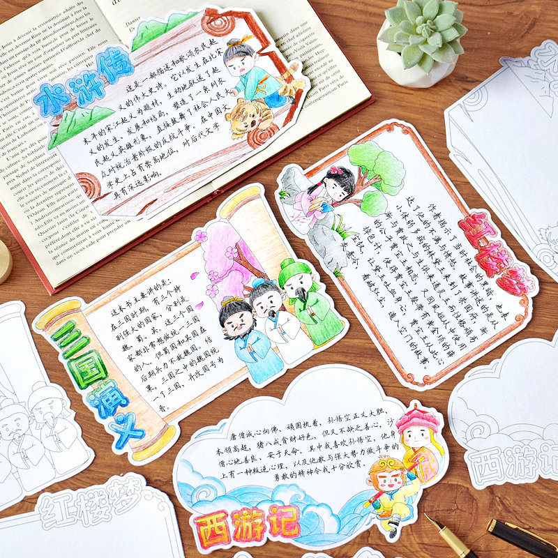 📚 读书卡小学生课外四大名著阅读手抄报西游记三国演义红楼梦水浒传读后记录卡手工制作填色卡涂鸦diy手绘模板
