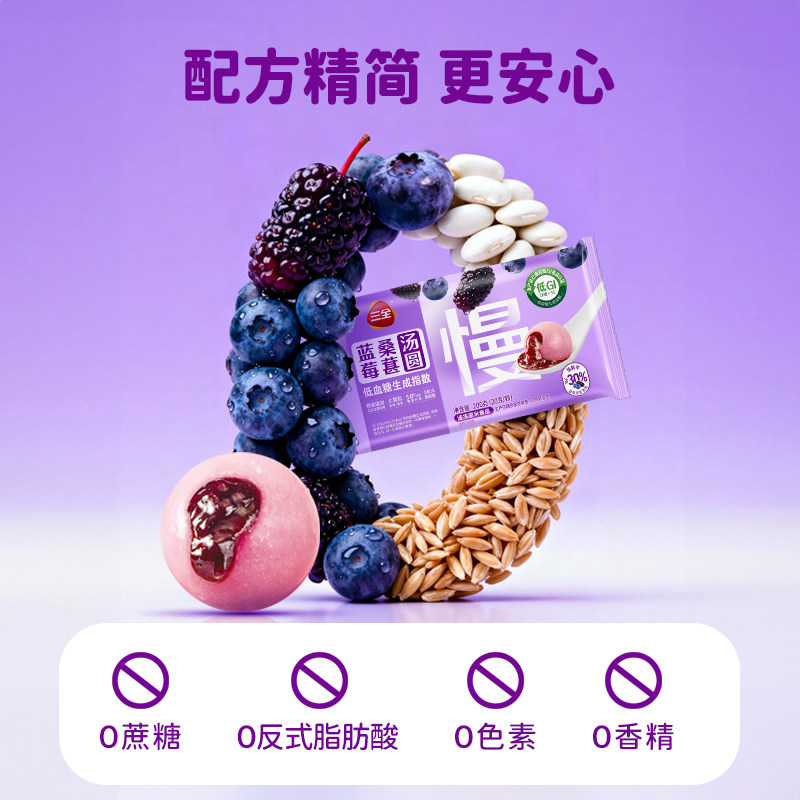 📚 三全低GI汤圆蓝莓桑葚汤圆速冻早餐半成品速食元宵甜品点水果汤圆