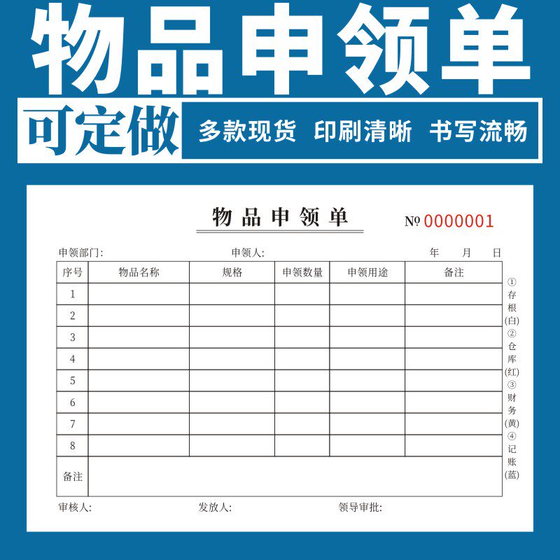 📚 物品申领单二联三联现货办公用品原料出库清单材料物资耗材酒店医院公司申领登记表单据定制领用记录本