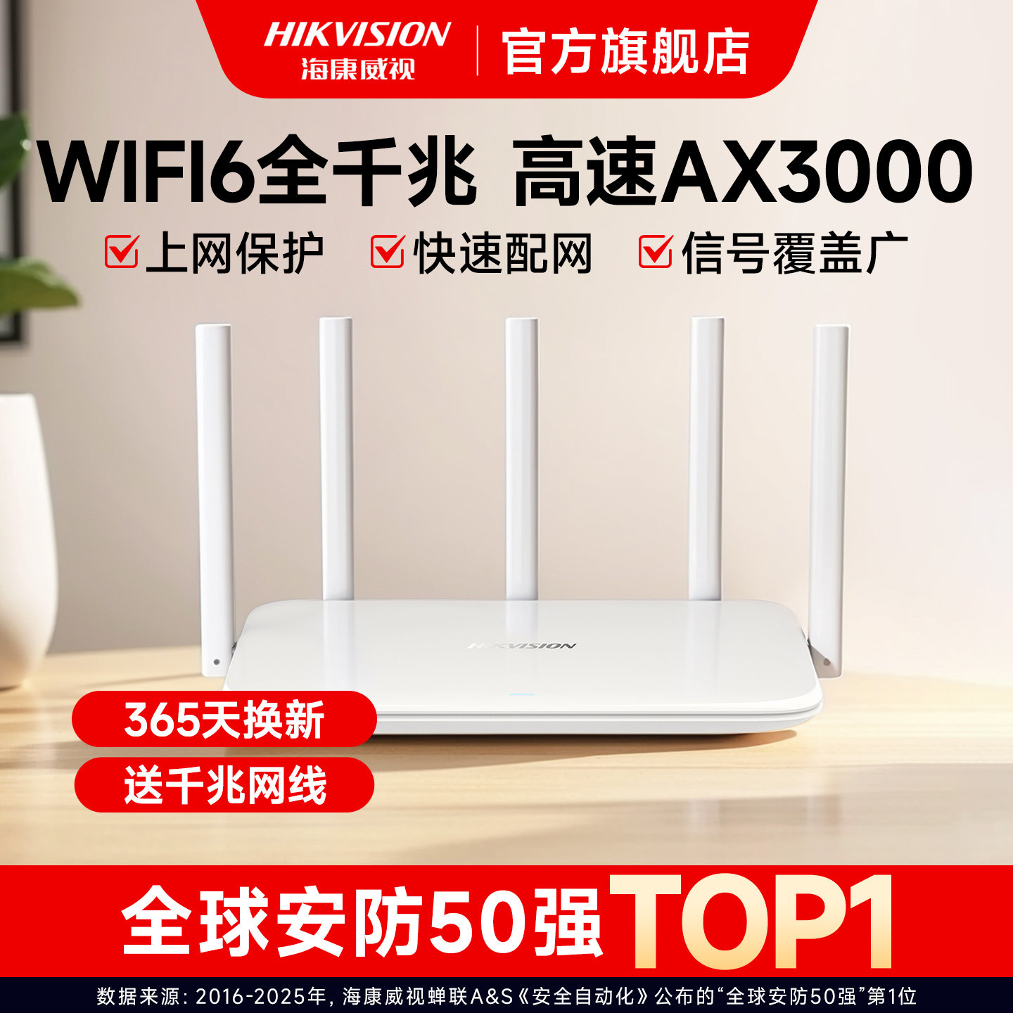 📚 海康威视无线路由器AX3000M千兆端口无线速率室内wifi6穿墙高速穿墙王双频5G大功率路由器宿舍学生寝室家专用