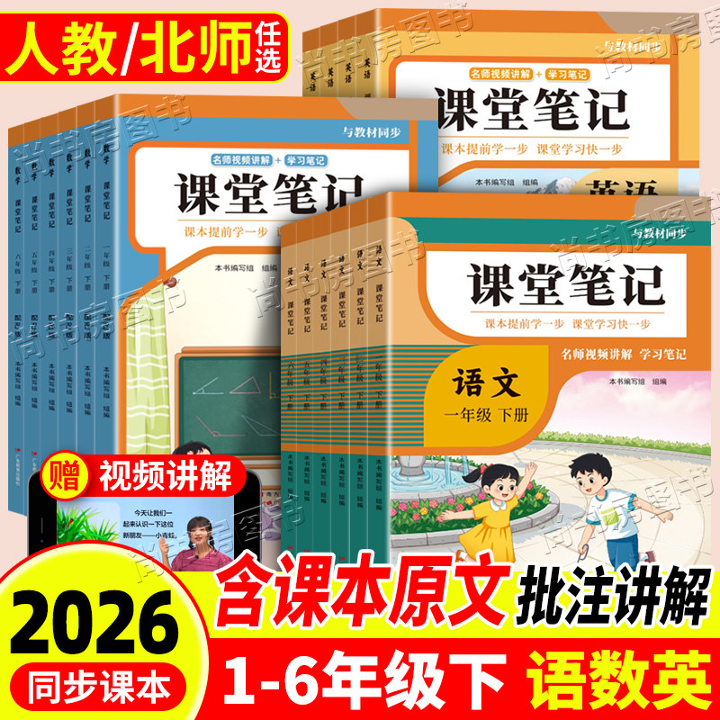📚 2026年春新版课堂笔记一二三四五六年级下册人教版语文数学英语课本同步辅导预习资料 小学生教材随堂笔记语数外全套复习资料全解