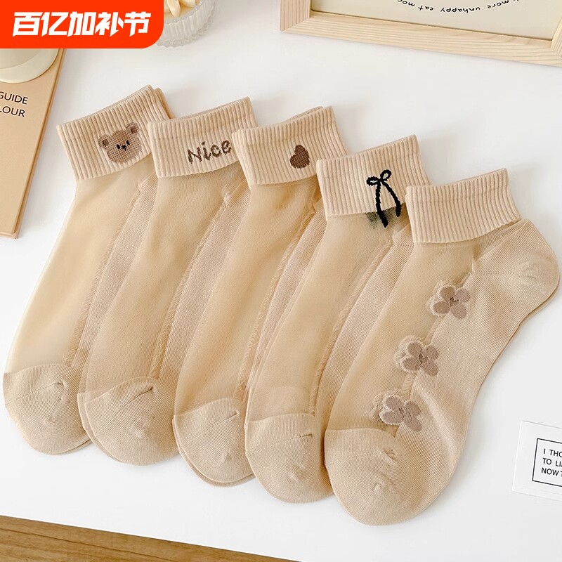 📚 袜子女透气春夏季薄款短袜水晶玻璃冰丝袜蕾丝花边短筒纯棉底透明