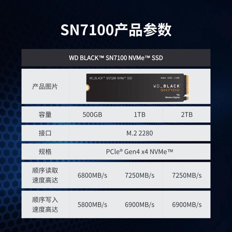 📚 WD西部数据SN3000 SN5000 SN7100 PCIE4.0NVMe协议M.2固态硬盘SSD