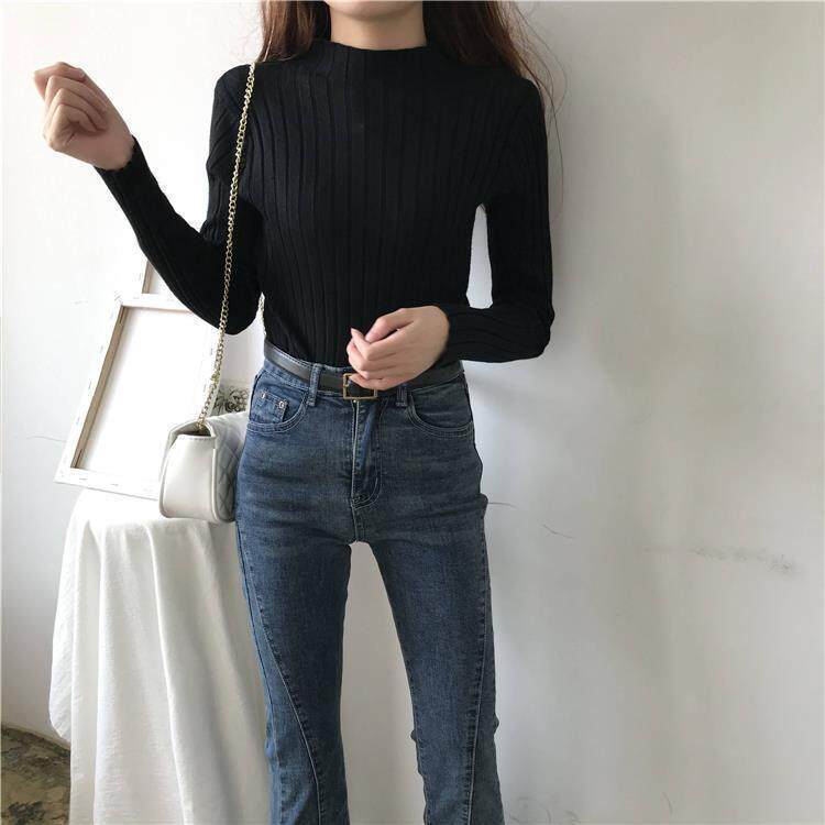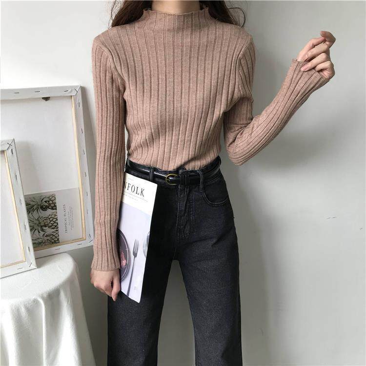 📚 2024秋冬新款修身韩版套头半高领针织衫外穿短款上衣女士打底毛衣