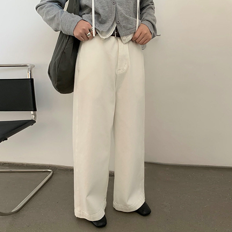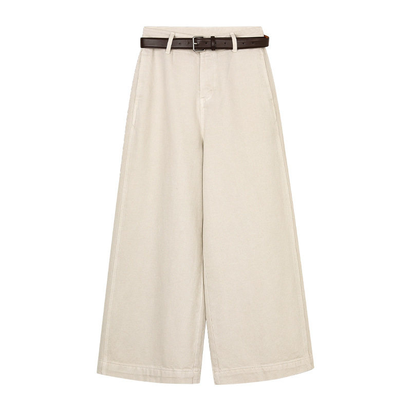📚 THXGIVING 简约阔腿直筒牛仔裤女2025春季新款皮带高腰百搭长裤