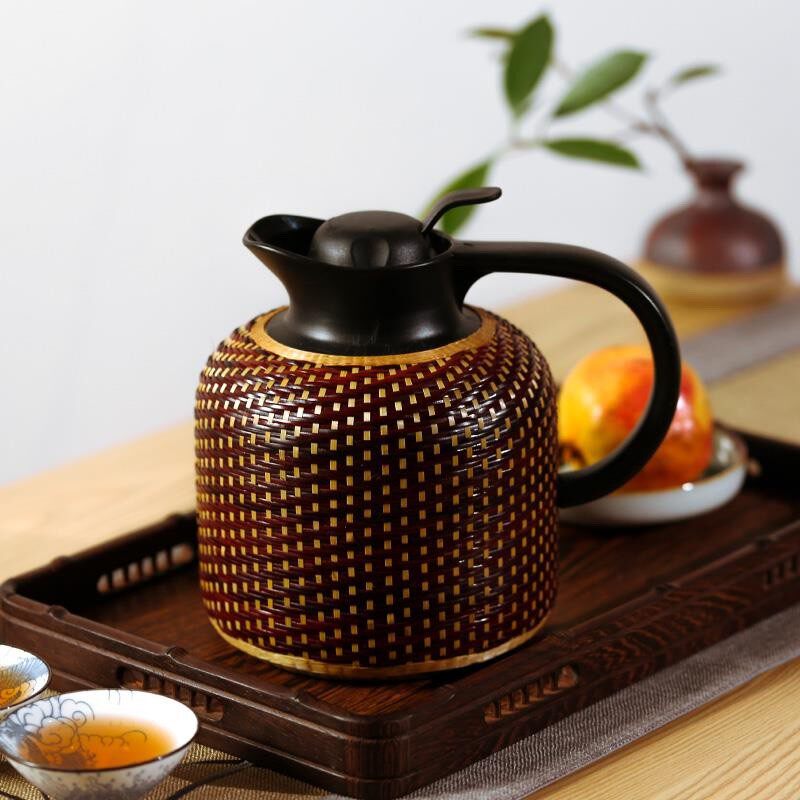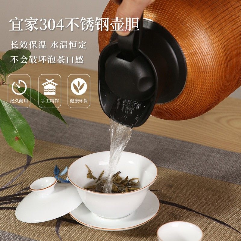 📚 超好评爆款精竹编竹丝热水瓶保温壶旅行车载便携茶具不锈钢超大号