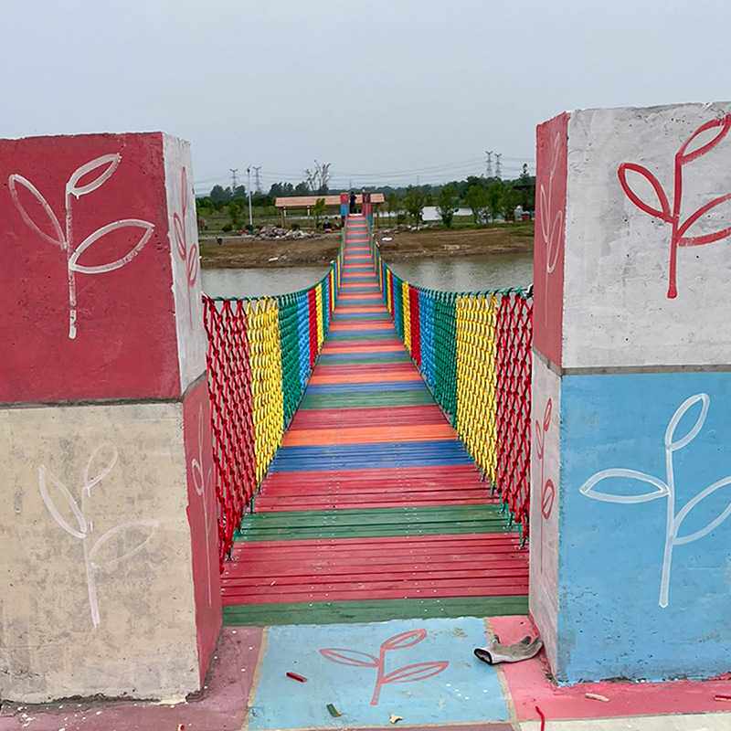 📚 户外水上吊桥木质景观桥高空玻璃吊桥水上钢索铁链桥大型悬索桥