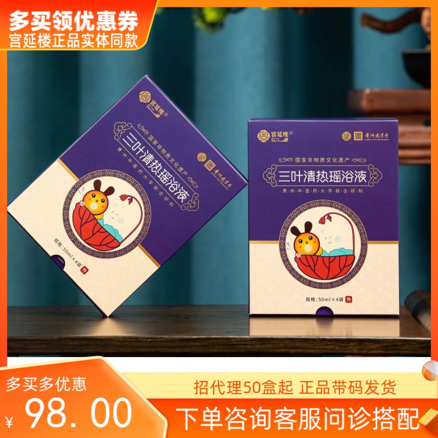 📚 宫延楼药浴三叶清热瑶浴 古法配方燥热难入睡清热解毒退热药浴液