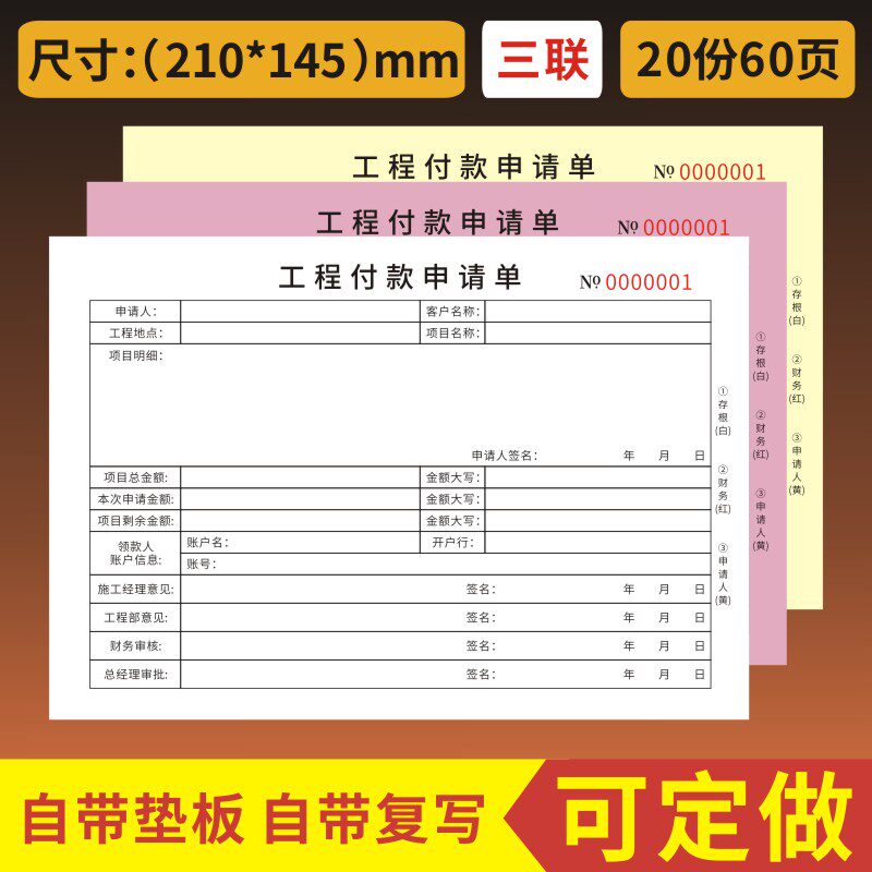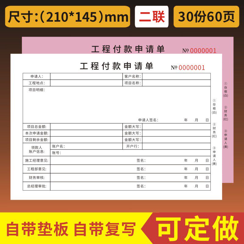 📚 工程付款申请单A5二联现货公司财务付款审批单建设项目进度款支付申请工程付款申请审批表格三联可定制