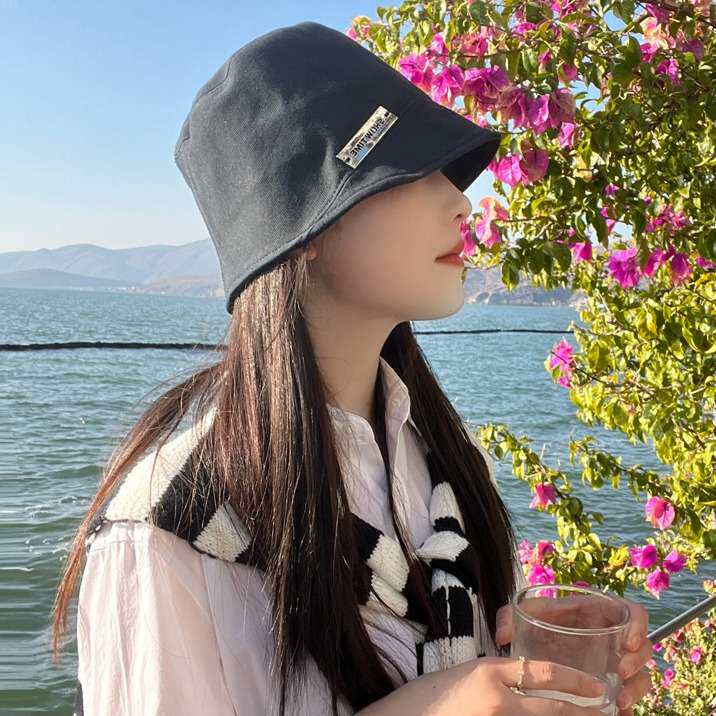 📚 帽子女款2024新款渔夫帽日系帆布秋冬季遮脸秃头圆顶优雅薄款