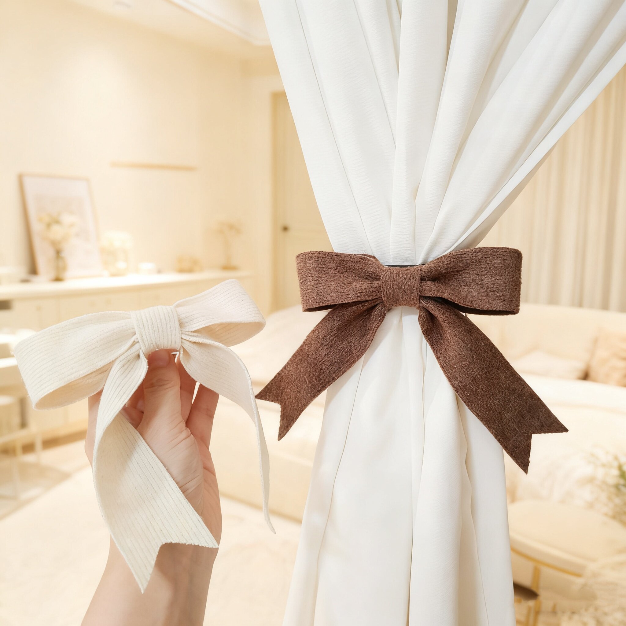 📚 简约新款针织蝴蝶结窗帘绑带奶油风束带收拢绳创意纱帘收纳夹绑饰