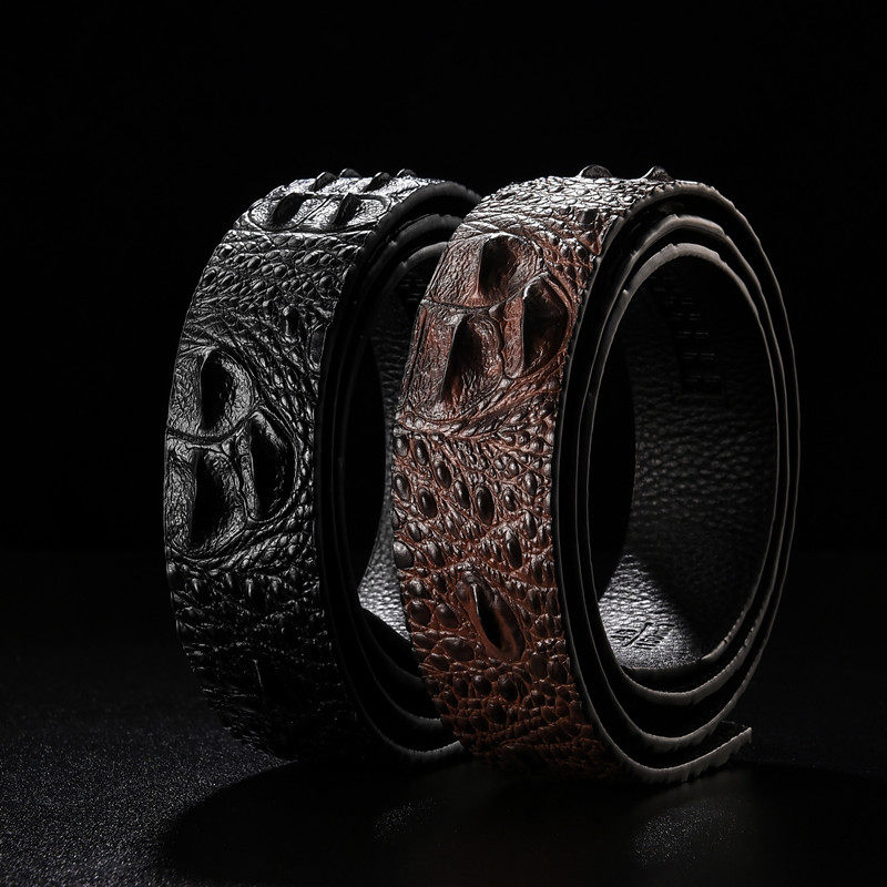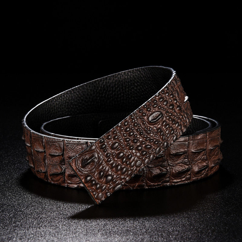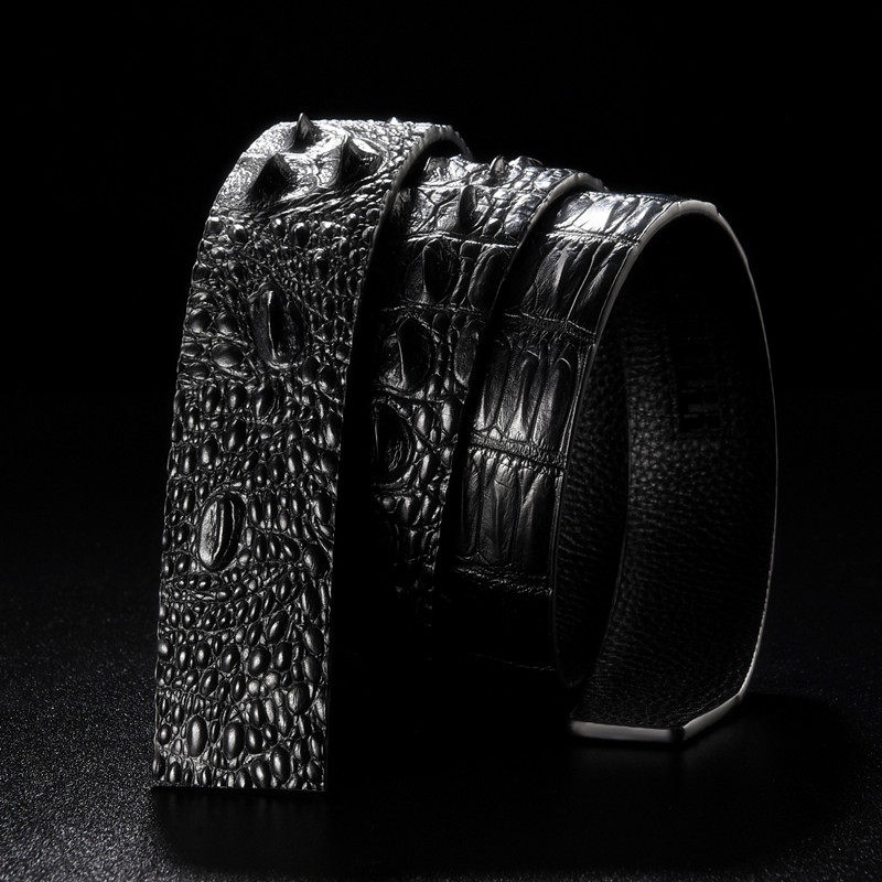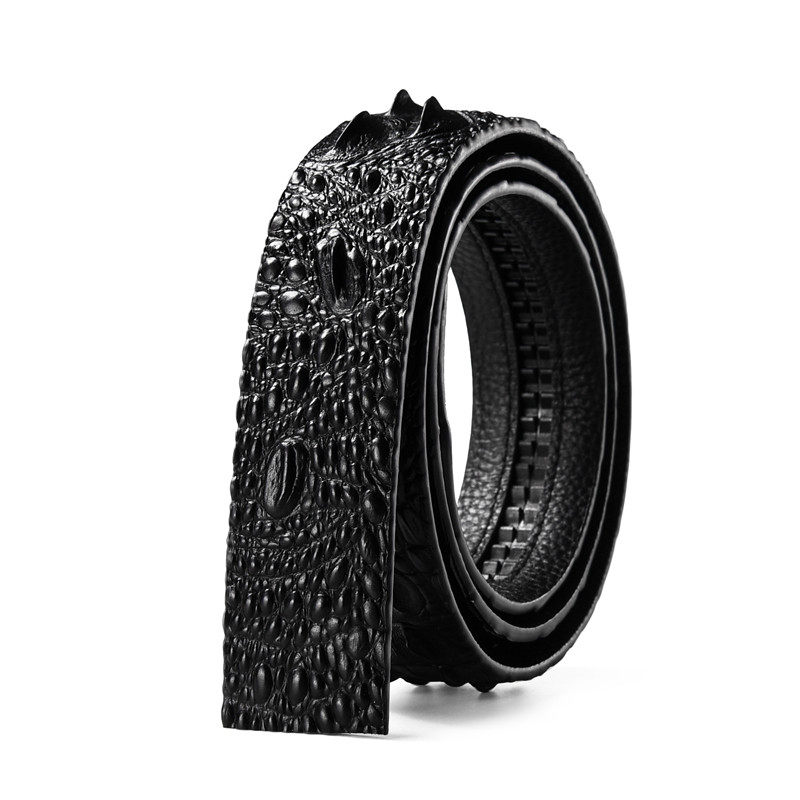 📚 无头自动扣皮带条不带头鳄鱼纹真皮裤带身牛皮无扣头光腰带男3.5c