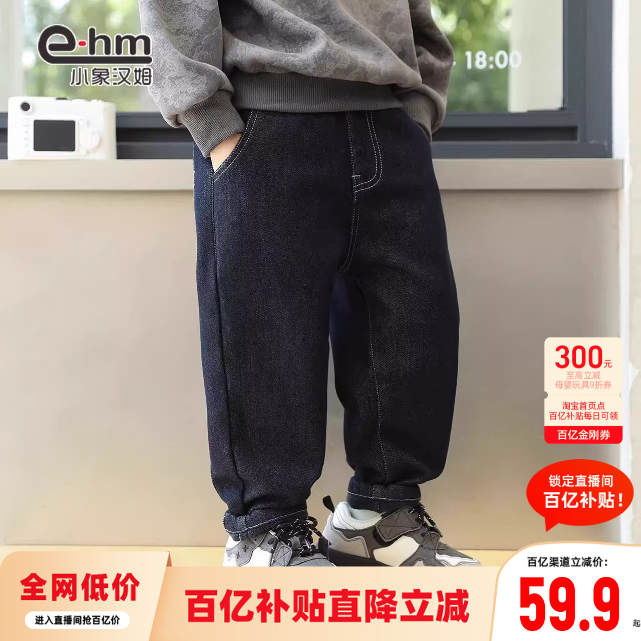 📚 小象汉姆童装男童春秋牛仔裤春装新款2026冬儿童休闲长裤子中大童