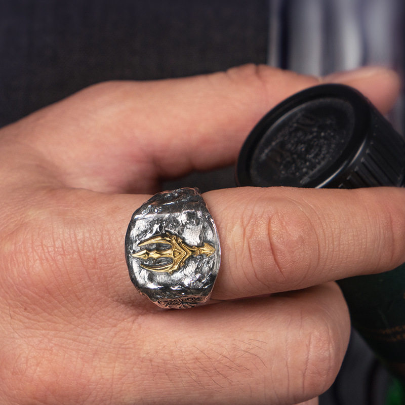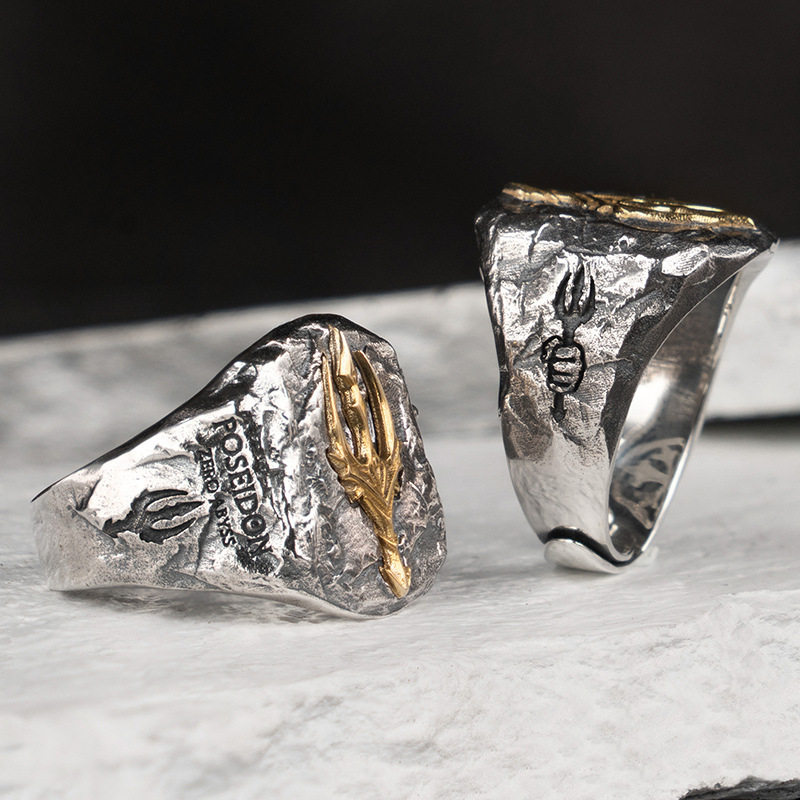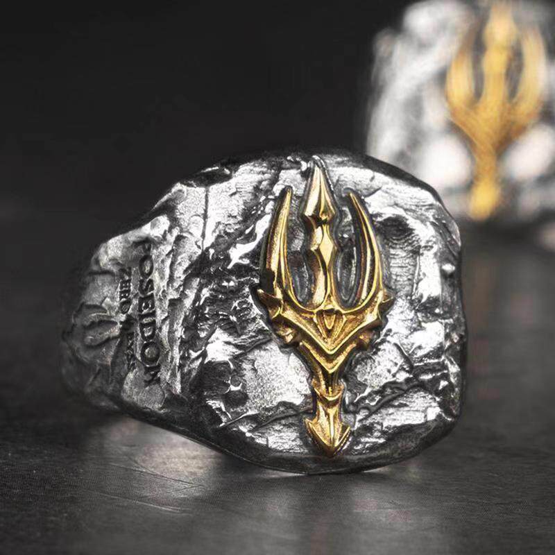 📚 波塞冬寒冰之怒三叉戟戒指潮男食指戒个性复古单身尾戒