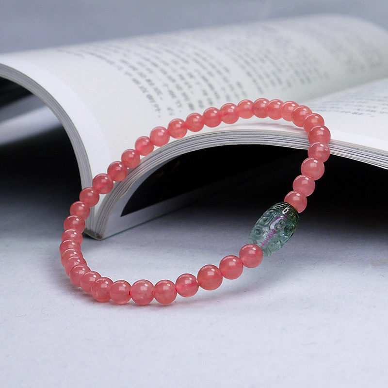 📚 天然5A级红纹石手链收藏级碧玺回纹珠原创设计水晶旺桃花手串单圈