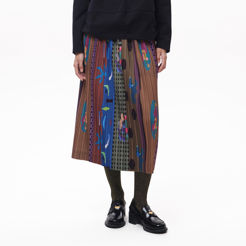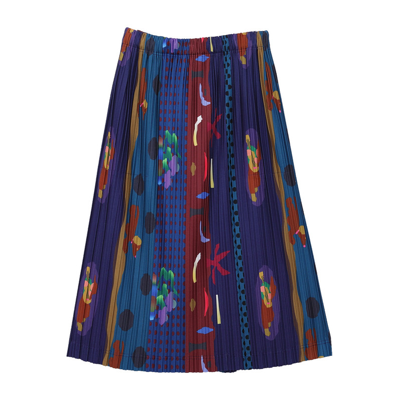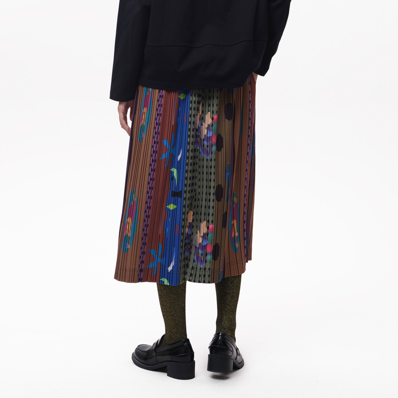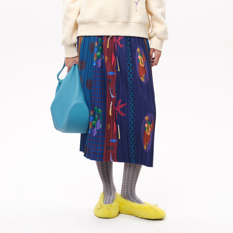 📚 MOVEUP幻走2025冬季新款.FUN系列丈根腰头趣味印花压褶复古半身裙