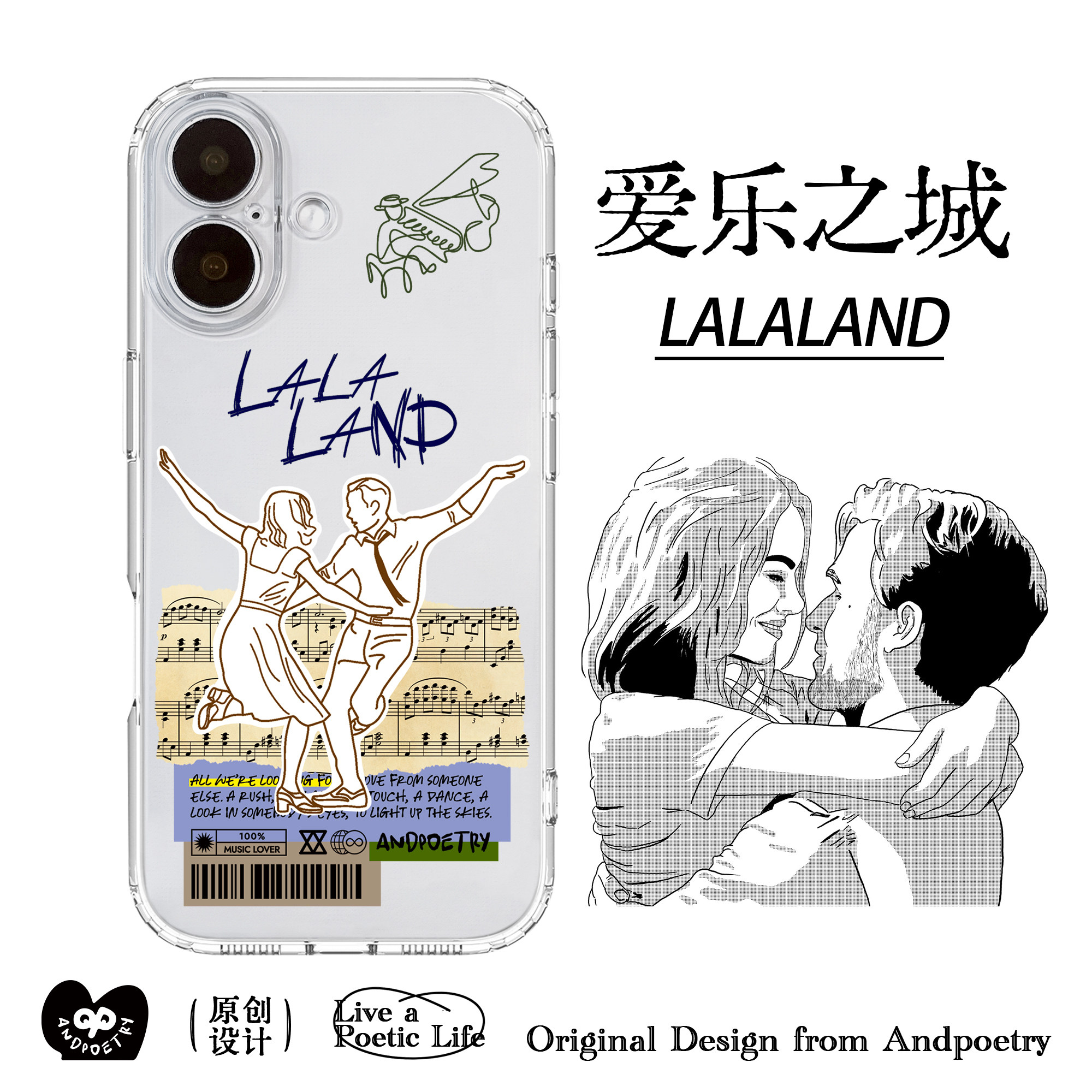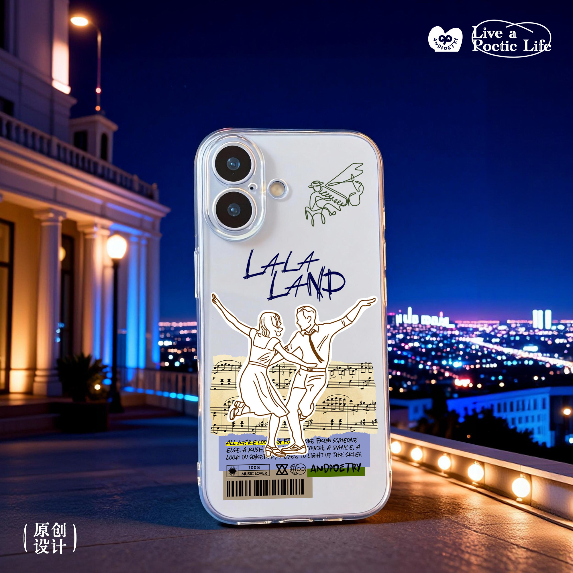 📚 与诗原创「爱乐之城」透明全包手机壳 适用苹果iPhone17/16ProMax LALALAND奥斯卡获奖音乐礼物