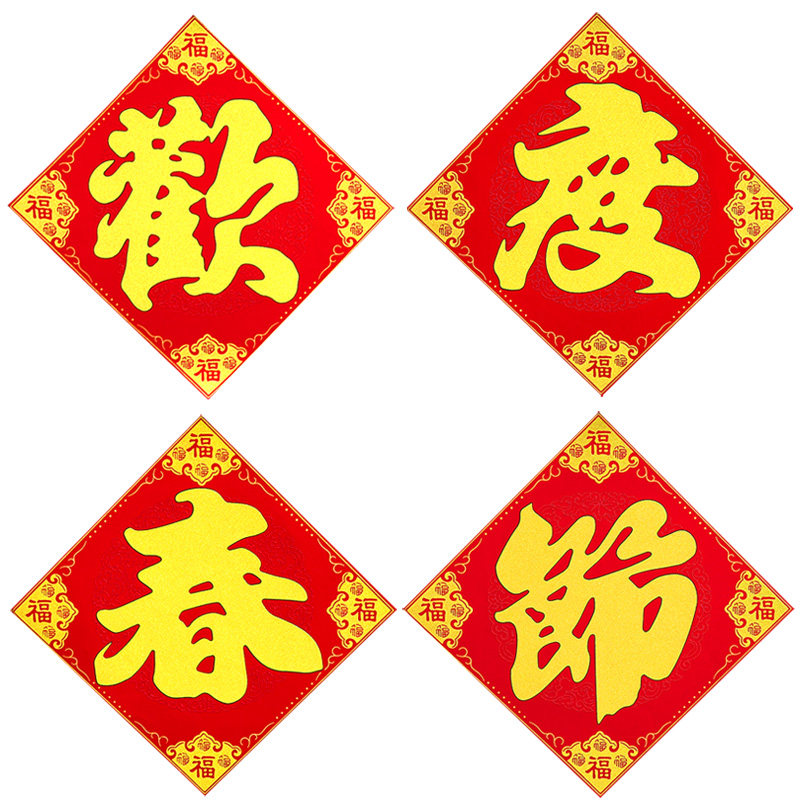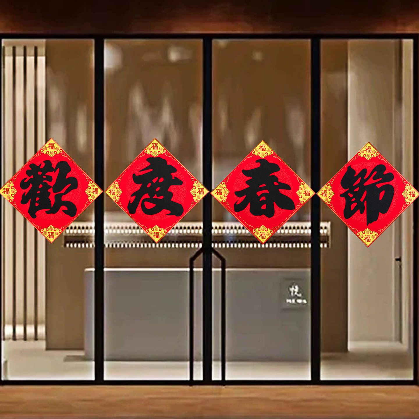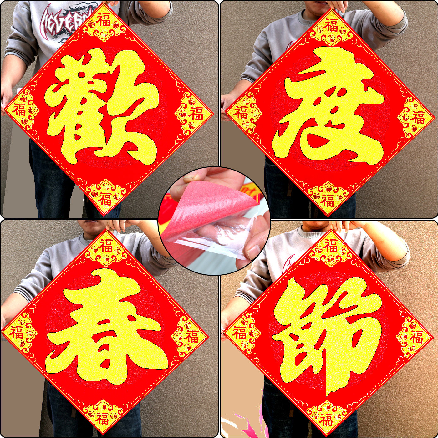 📚 红布欢度春节大字四个字贴纸开业大吉门贴开业门店氛围春节装饰品