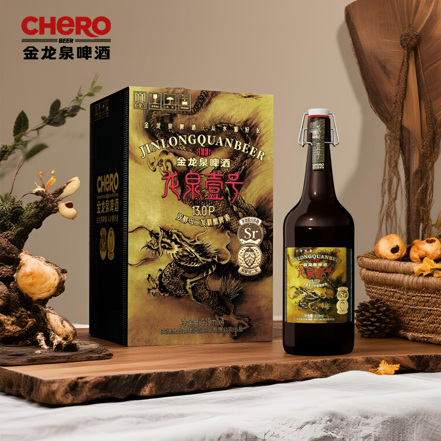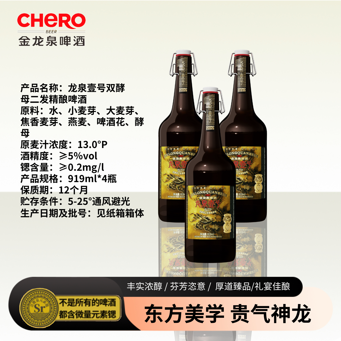📚 金龙泉龙泉壹号双酵母二发精酿啤酒 13°P 919ml*4瓶 整箱礼盒装