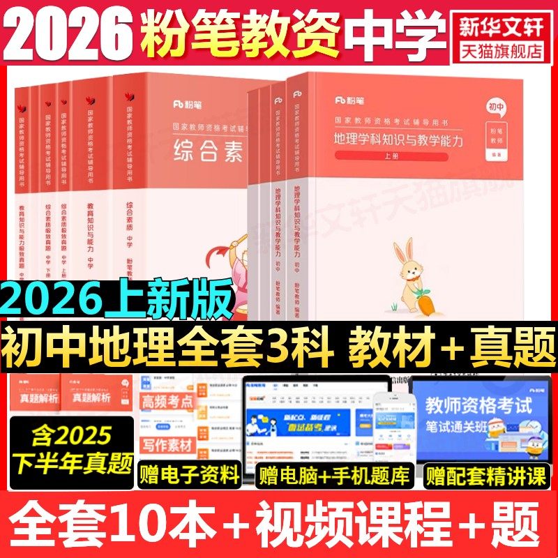 📚 初中地理全套科一科二科三粉笔教资2026上半年中学教师证资格考笔试资料全套教材真题库试卷初高中英语数学语文美术历史政治物化生