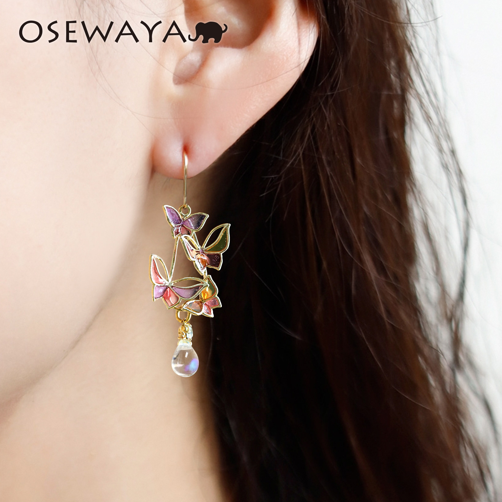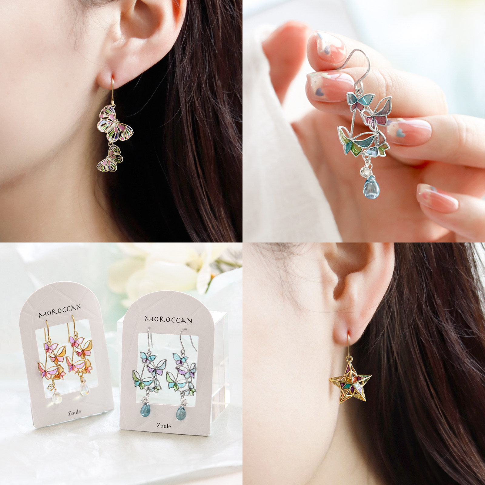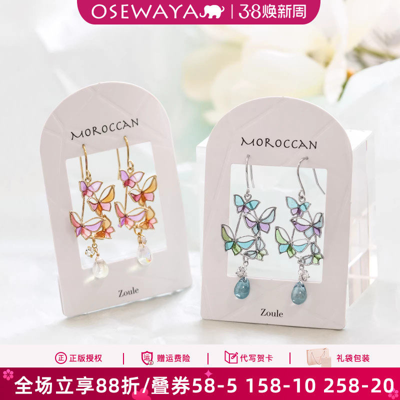 📚 OSEWAYA春夏梦幻蝴蝶耳环ins风少女镂空彩色星芒小众设计摩洛耳饰