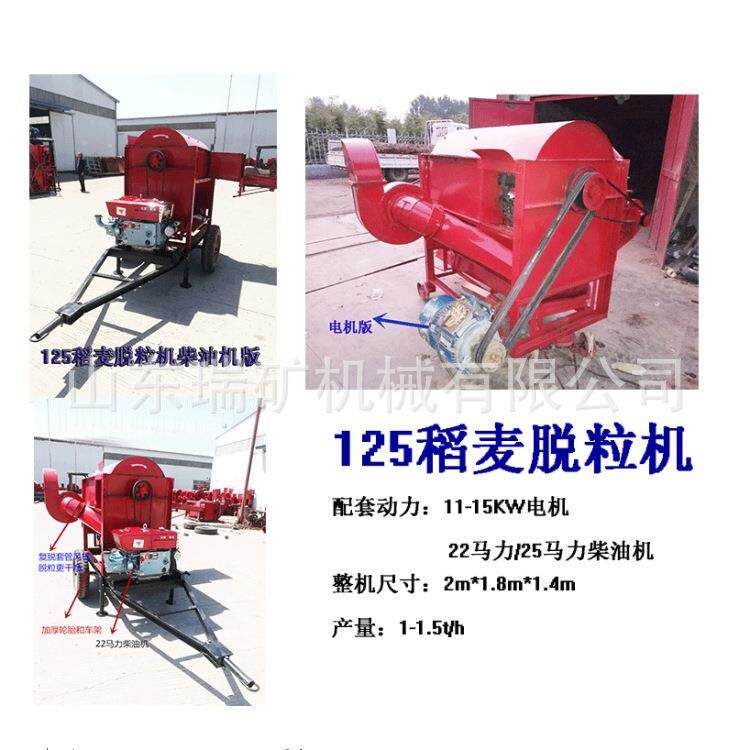 📚 农间作业125型自动小麦耔高粱蚕豆大豆打谷机稻穗脱粒机