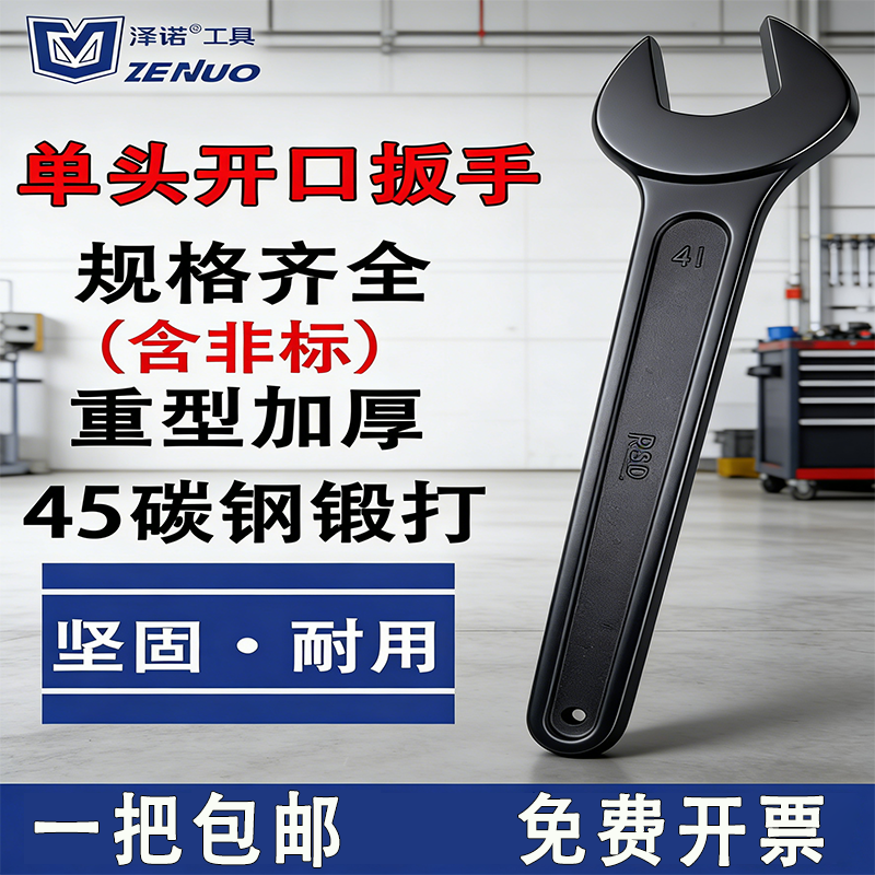 📚 重型单头开口扳手高碳钢46mm大号呆口发黑扳手叉板手塔吊专用扳手