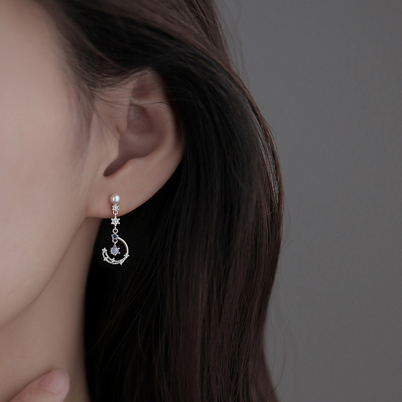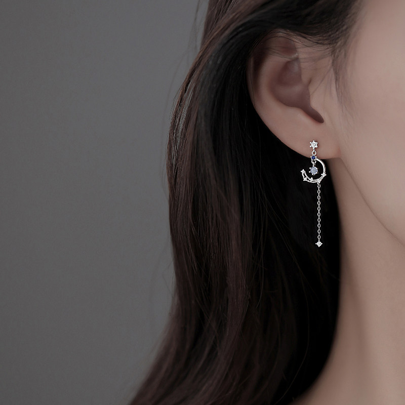 📚 s925纯银不对称月亮耳钉女2022年新款小众设计轻奢耳环耳饰小清新