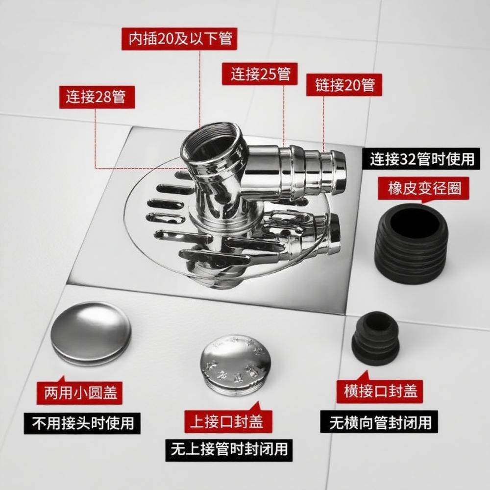 📚 110管地漏12cm洗衣机三通排水快防堵防反味淋浴房户外防臭下水道