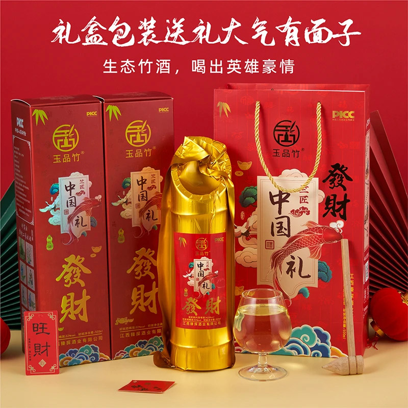 📚 玉品竹恭喜发财竹筒酒52度正品鲜竹酒中国红礼盒江西特产高度白酒