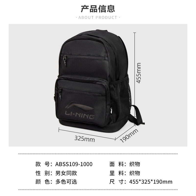 📚 李宁双肩包背包男初高中大学生女大容量运动骑行旅行通勤便捷书包