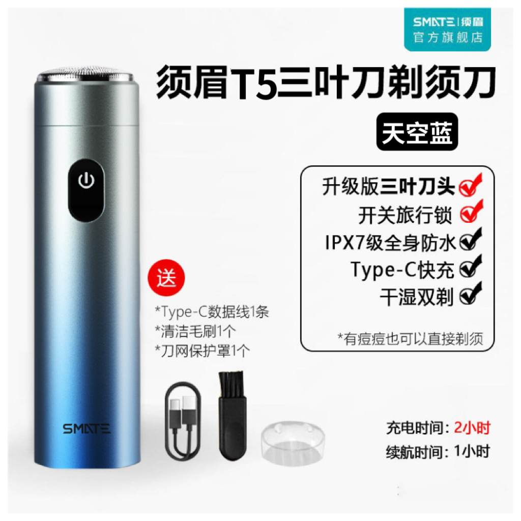 📚 须眉男士电动剃须刀圆柱时尚便携小巧防水男生刮胡刀情人节礼物T5