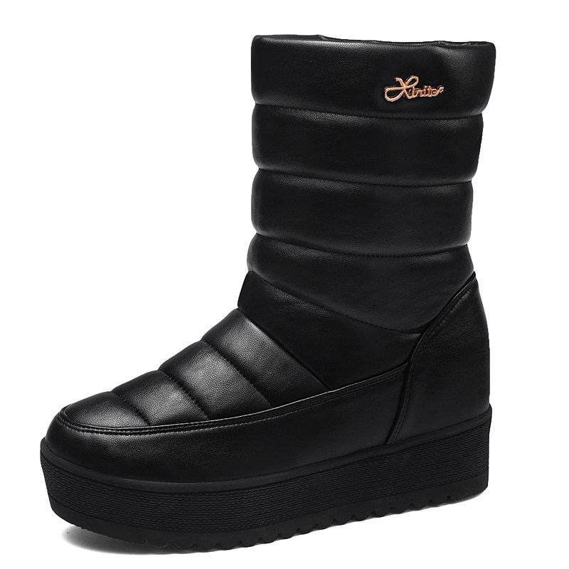 📚 特厚雪地靴女2024冬季加绒加厚棉鞋厚底防滑中筒靴防水皮面棉靴子