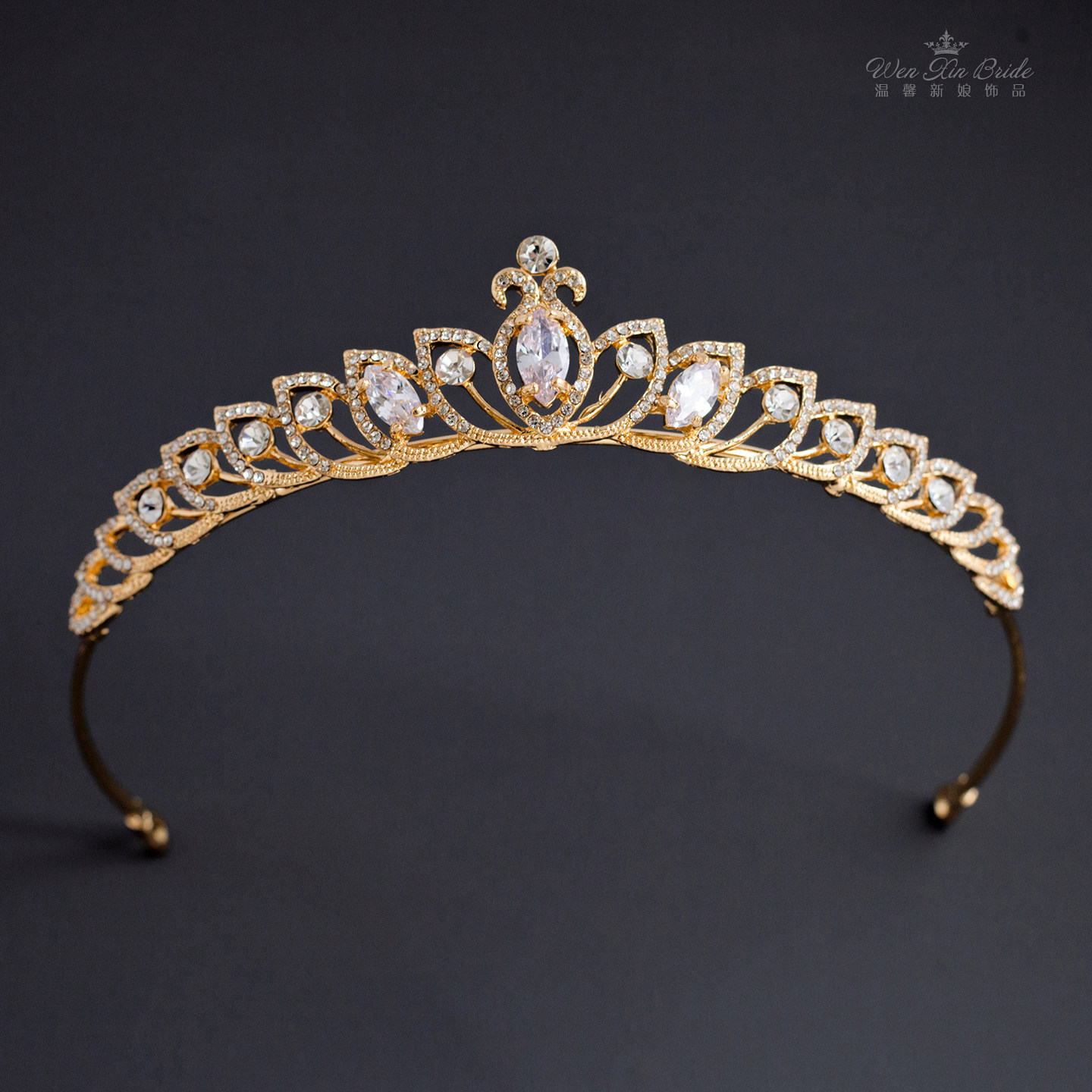 📚 新款锆石水钻合金皇冠新娘婚纱礼服发冠头饰舞台钢琴表演发饰王冠