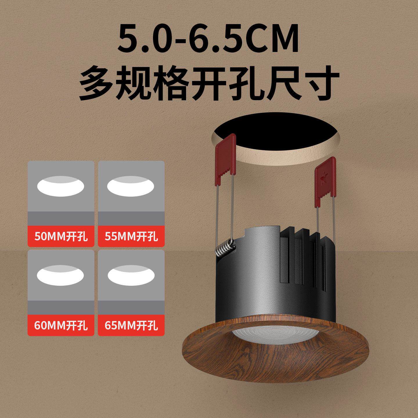 📚 胡桃木纹小筒灯led嵌入式开孔5 5.5 6cm50 60 65mm射灯复古天花灯
