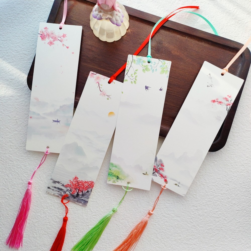 📚 创意空白大号书签手绘水墨吊卡片古典中国风带流苏手工制diy材料