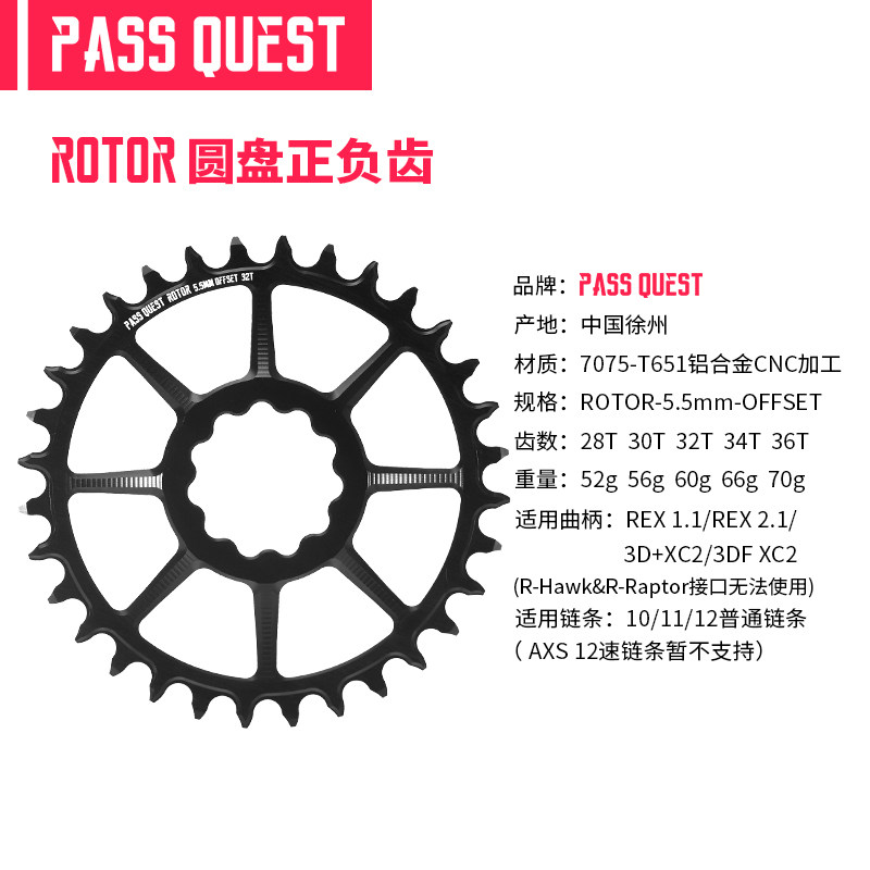 📚 PASS QUEST rotor直装牙盘5.5mm offset山地自行车盘片正负齿单盘