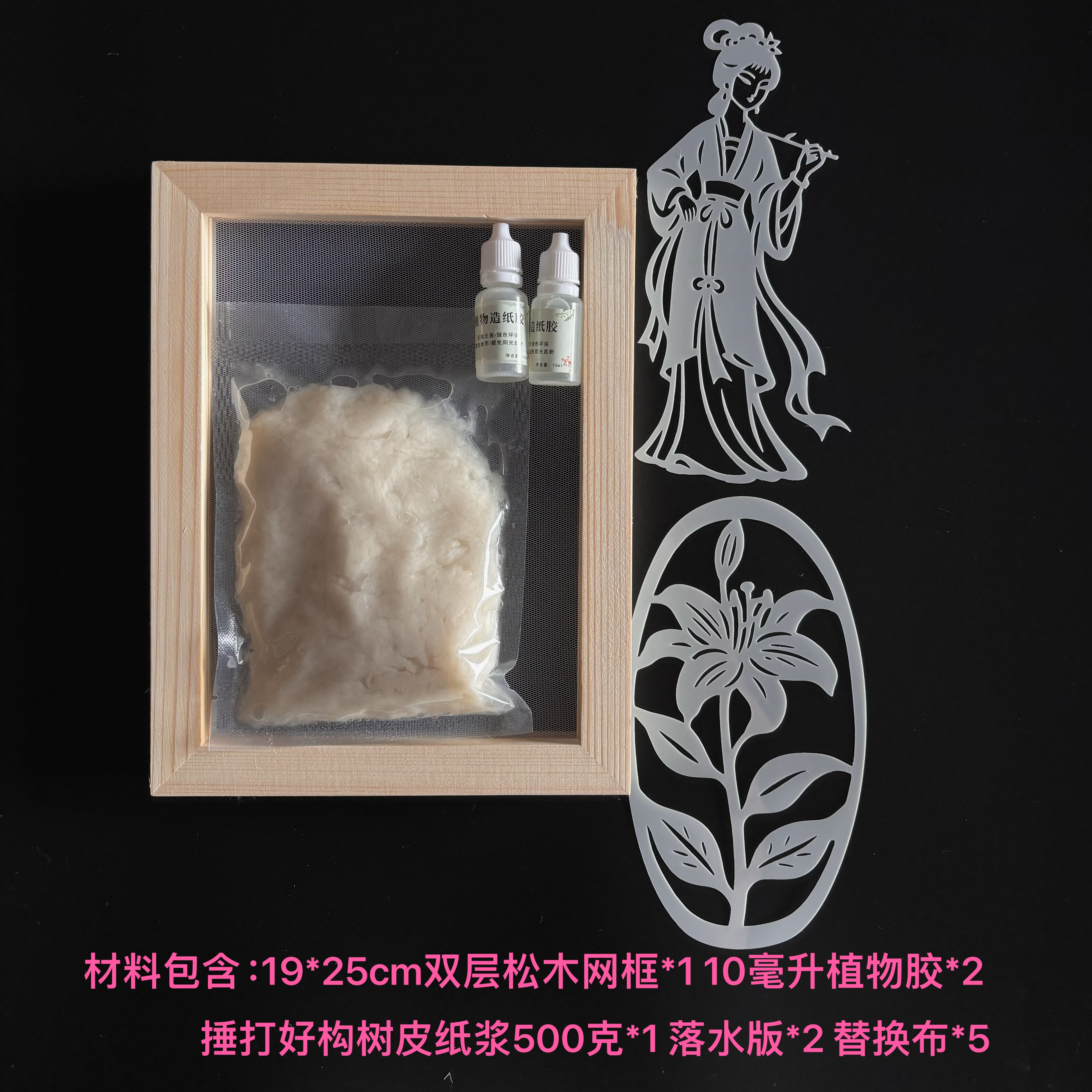📚 古法造纸术DIY材料套装双层松木网框树皮纸浆儿童手工制作花草纸