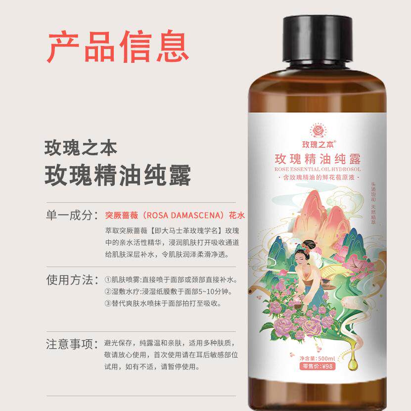 📚 大马士革玫瑰纯露爽肤水补水保湿喷雾精油护肤湿敷水玫瑰精华水