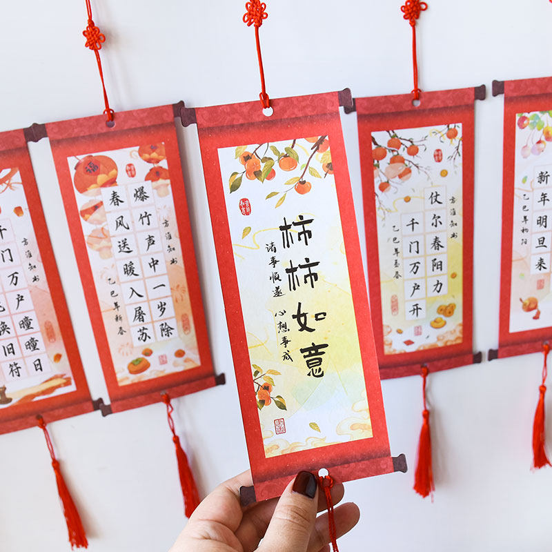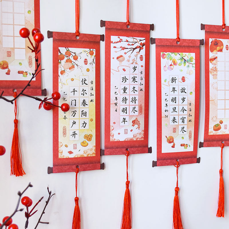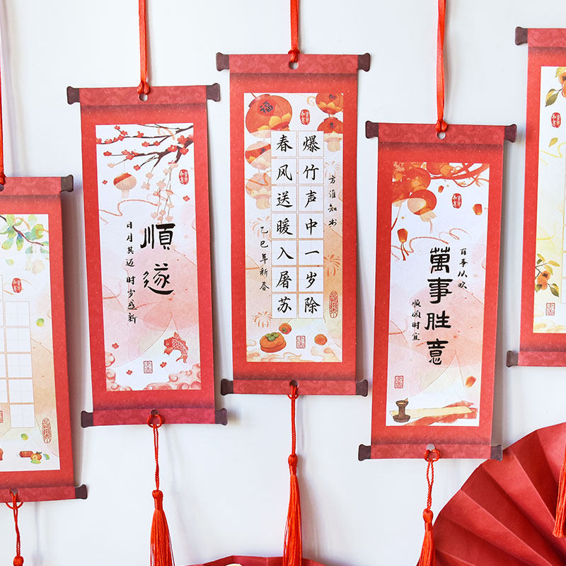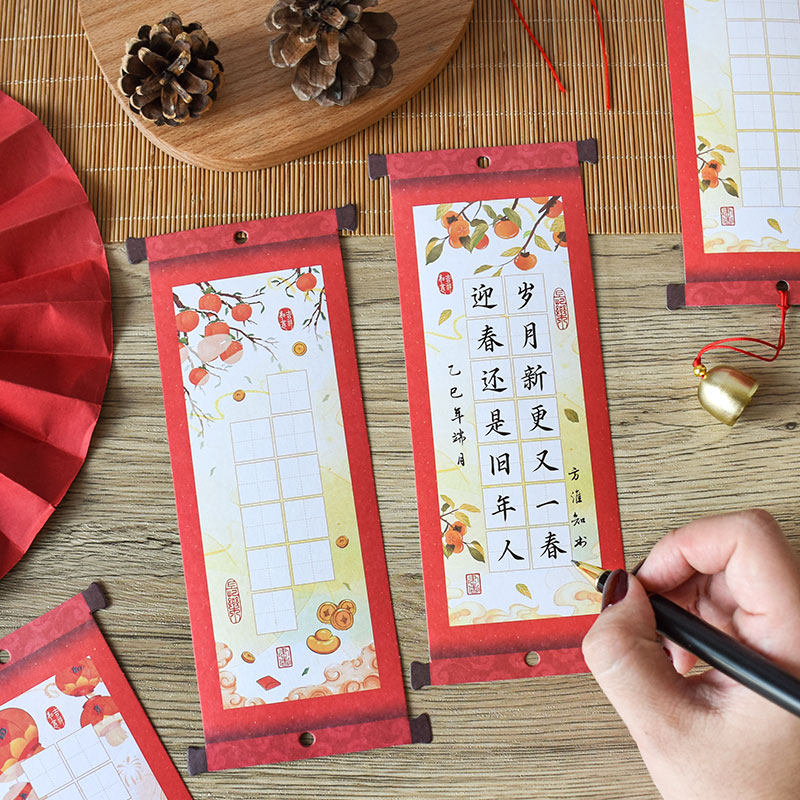 📚 元旦新年喜至福来中国风硬笔书法纸国潮仿古卷轴式吊卡培训班作品墙布置展示挂卡小学生幼儿园儿童高级练字纸