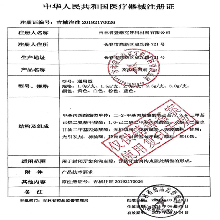 📚 牙科材料 登泰克窝沟封闭剂 齿科登泰克流体树脂 染色窝沟封闭剂
