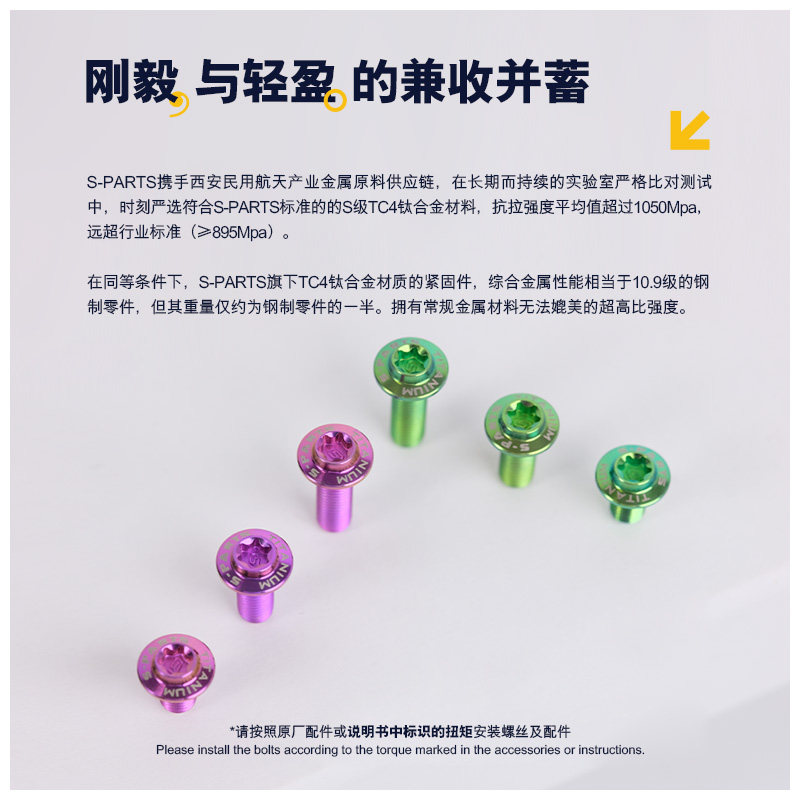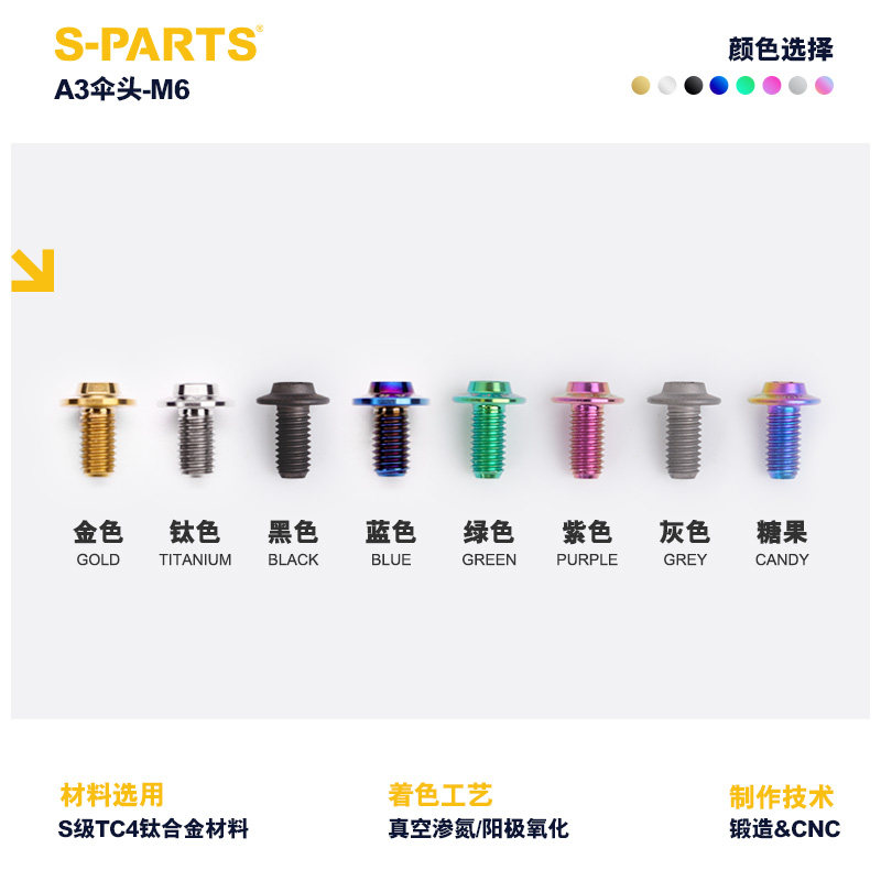 📚 S-PARTS A3 D13伞头M6 钛合金螺丝 电动摩托车金/黑/蓝/钛斯坦