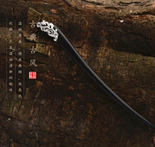 📚 入梦 925纯银祥云发簪黑檀木簪子古风汉服旗袍发饰盘发饰品礼物