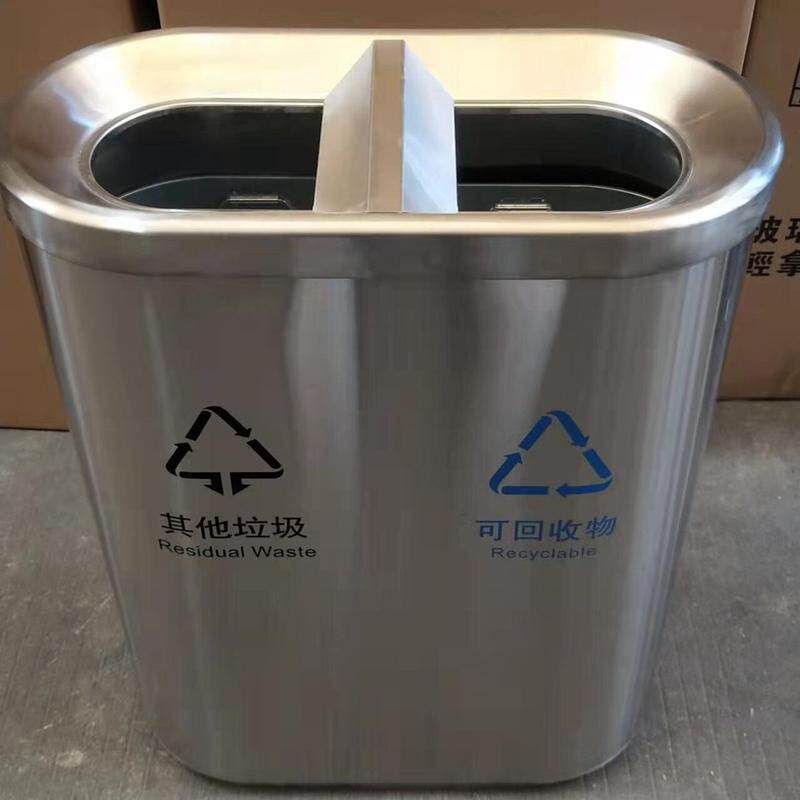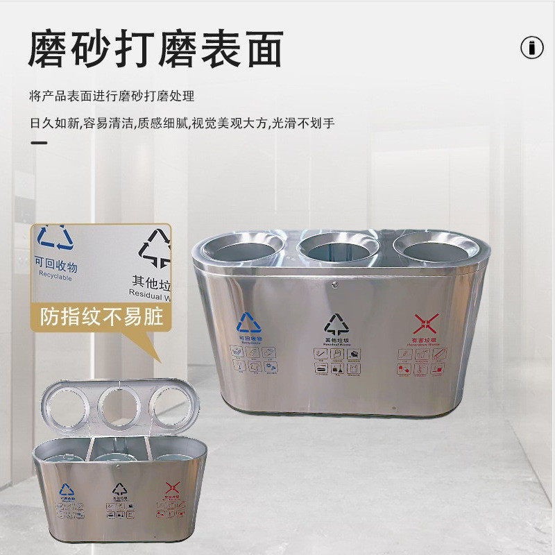 📚 不锈钢室内外分类垃圾桶商场酒店地铁立式砂钢可定干湿垃圾桶