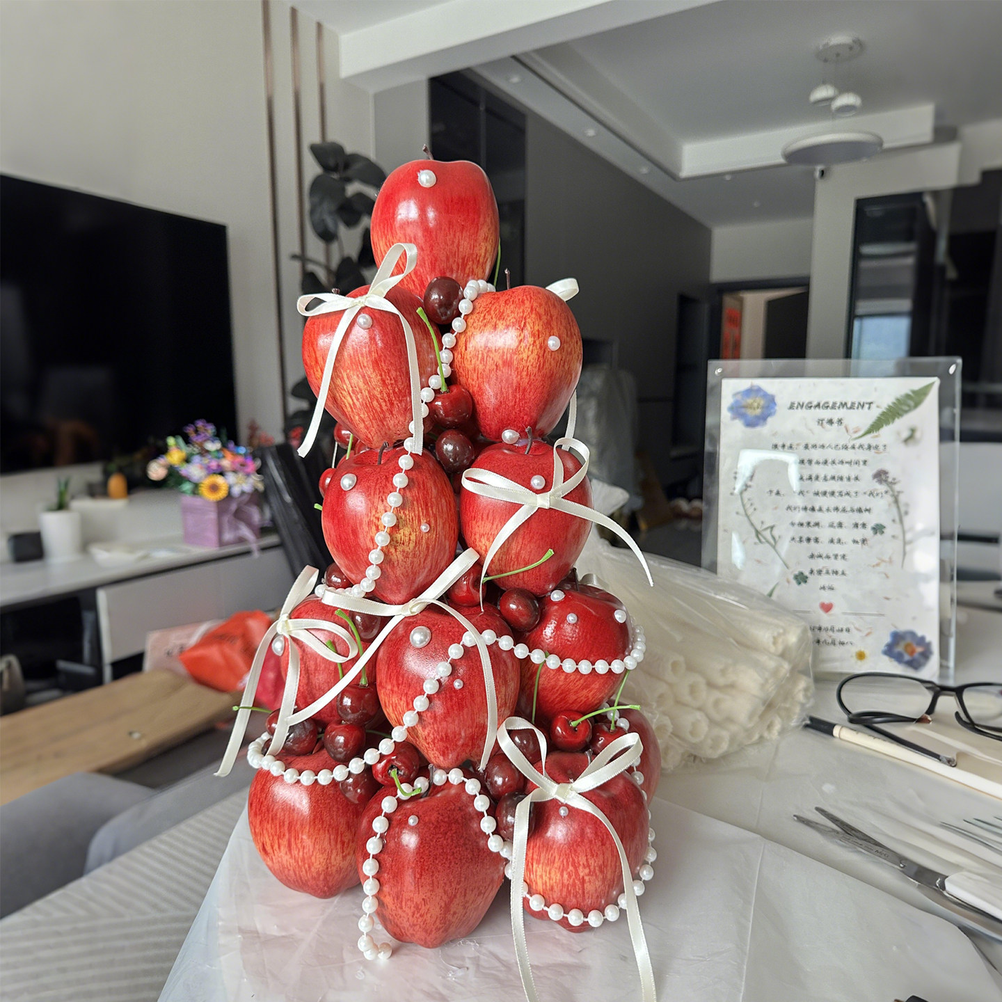 📚 圣诞树苹果塔创意圣诞节商场橱窗门店桌面摆件氛围感装饰仿真蛇果