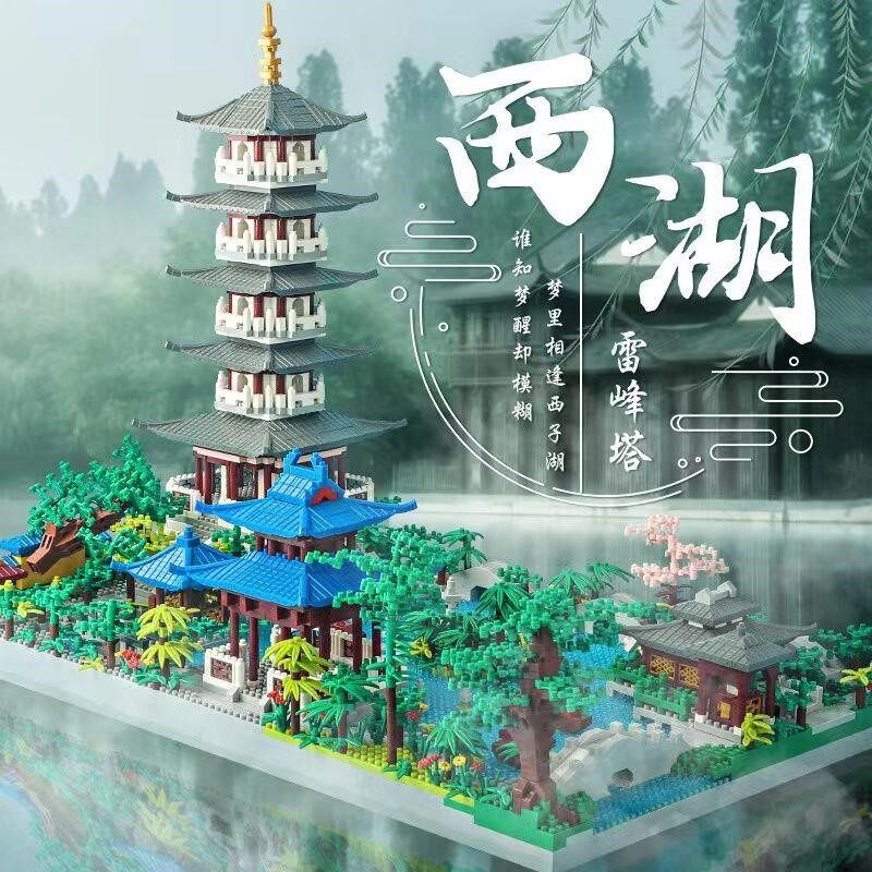 📚 杭州西湖景点系列建筑积木立体模型益智拼装玩具男孩女孩手工